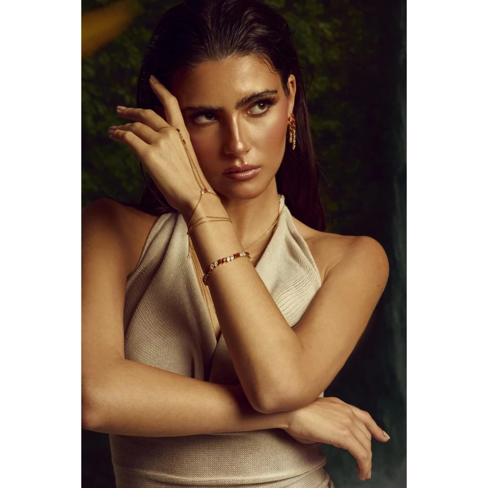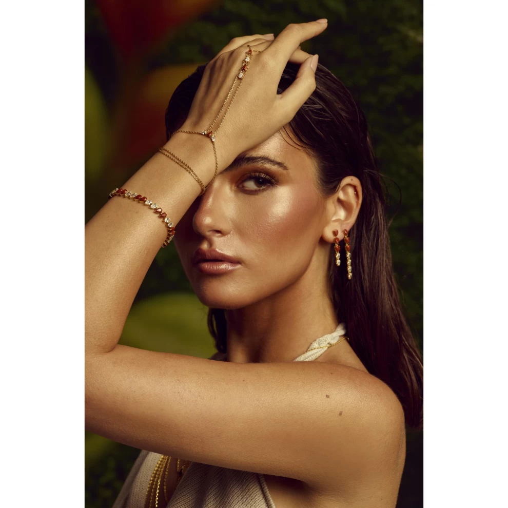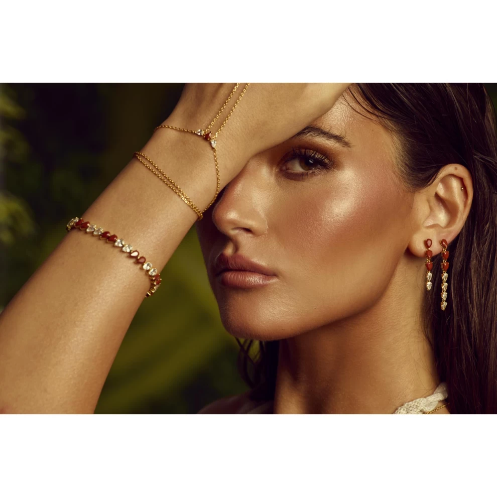 نحاس مطلي بالذهب عيار 18 ثقيل، مقاس القطرة: 4.3 سم، حجر اليشب الأحمر، أحجار الزركونيا المكعبة، مصقول يدويًا