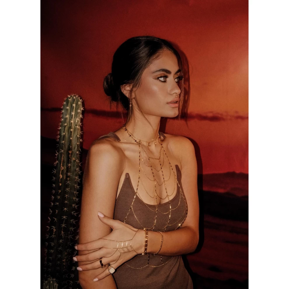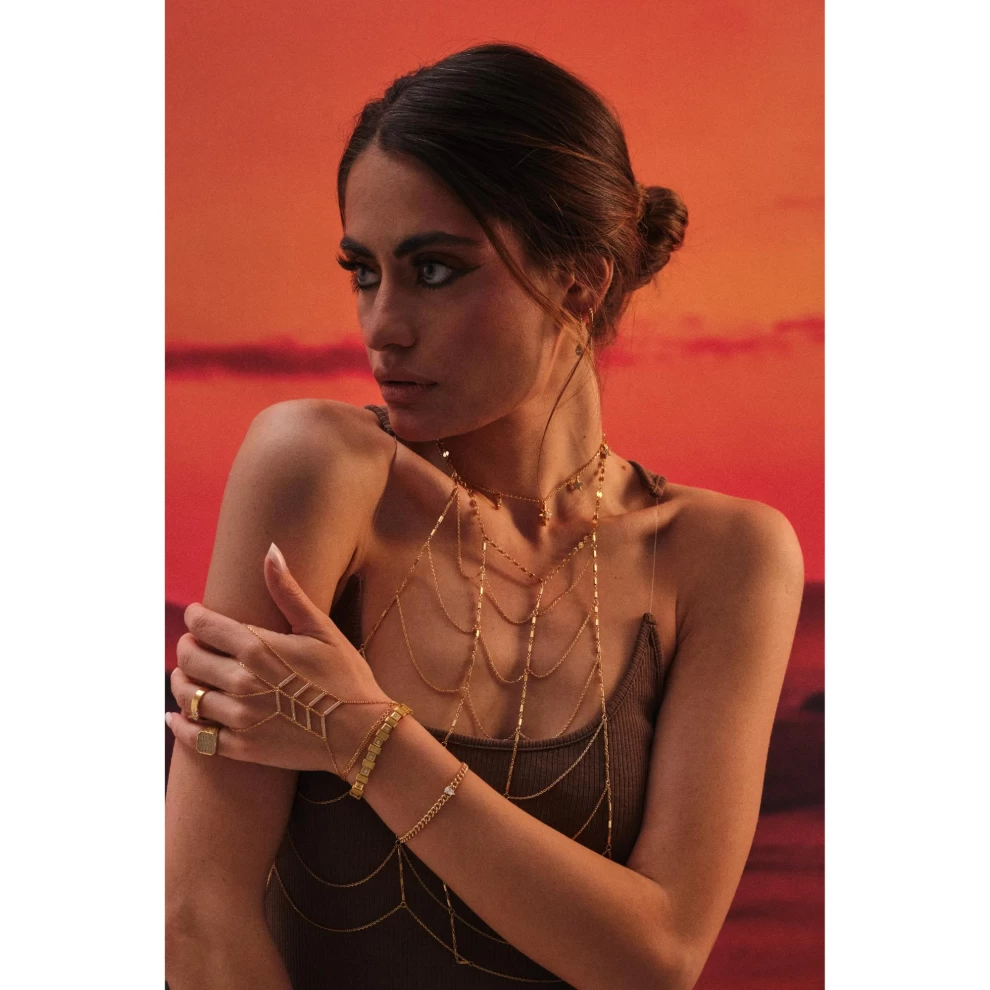 نحاس مطلي بالذهب عيار 18 ثقيل، المقاس: 46 سم + امتداد 5 سم، حجر زركونيا مكعب، مصقول يدويًا