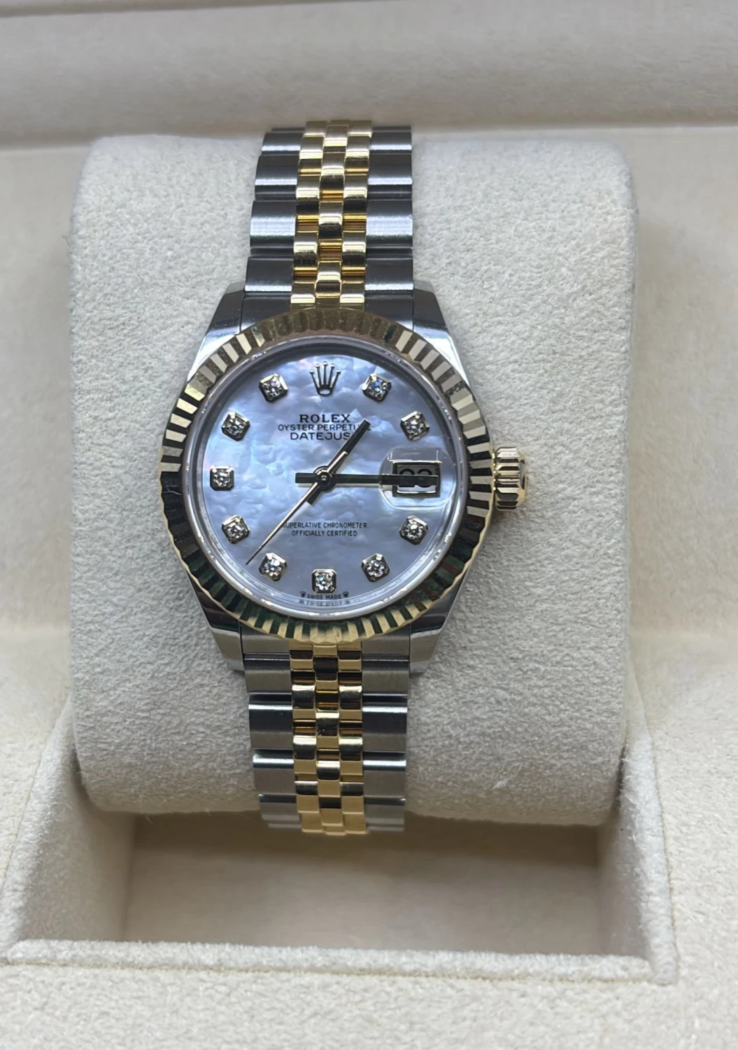 رولكس دي جست جوبلي (28mm) ستيل وذهب موديل 2025، مستخدمة بكامل مرفقاتها والتاج الأبيض. أناقة الروز قولد والستيل بأحدث إصداراتها وبحالة ممتازة، متوفرة الآن بسعر: 5050 فقط.