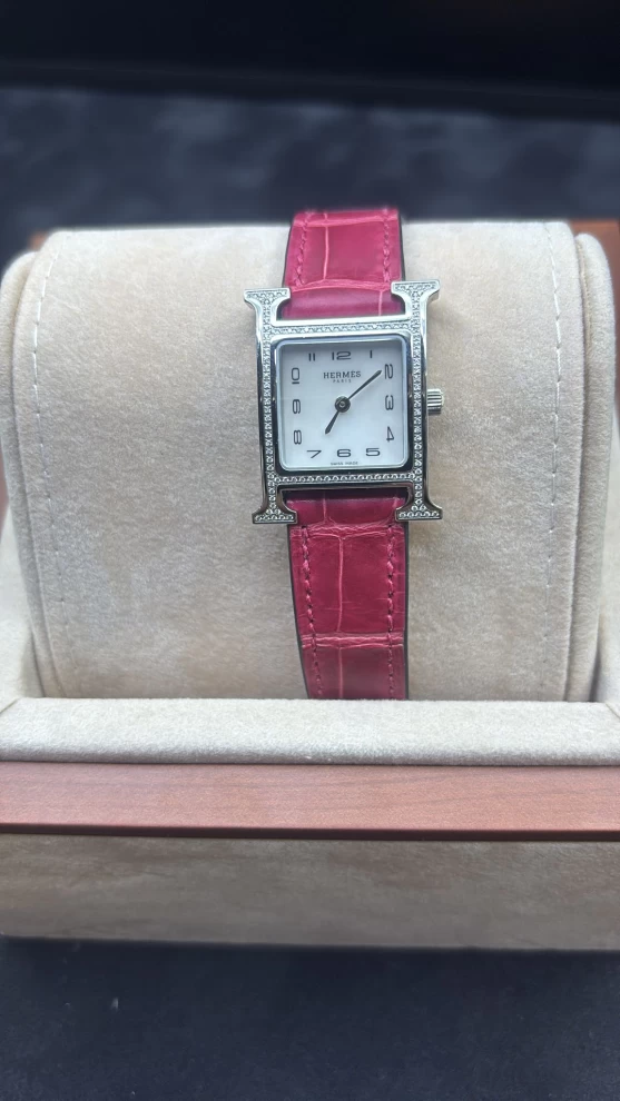 ساعة هيرميس ستيل مقاس 21 موديل 2023 بحالة ممتازة، كاملة المرفقات ومعها فاتورة الشراء. الأناقة والضمان في قطعة واحدة بسعر 1100، فرصة مميزة لعشاق التميز والفخامة.