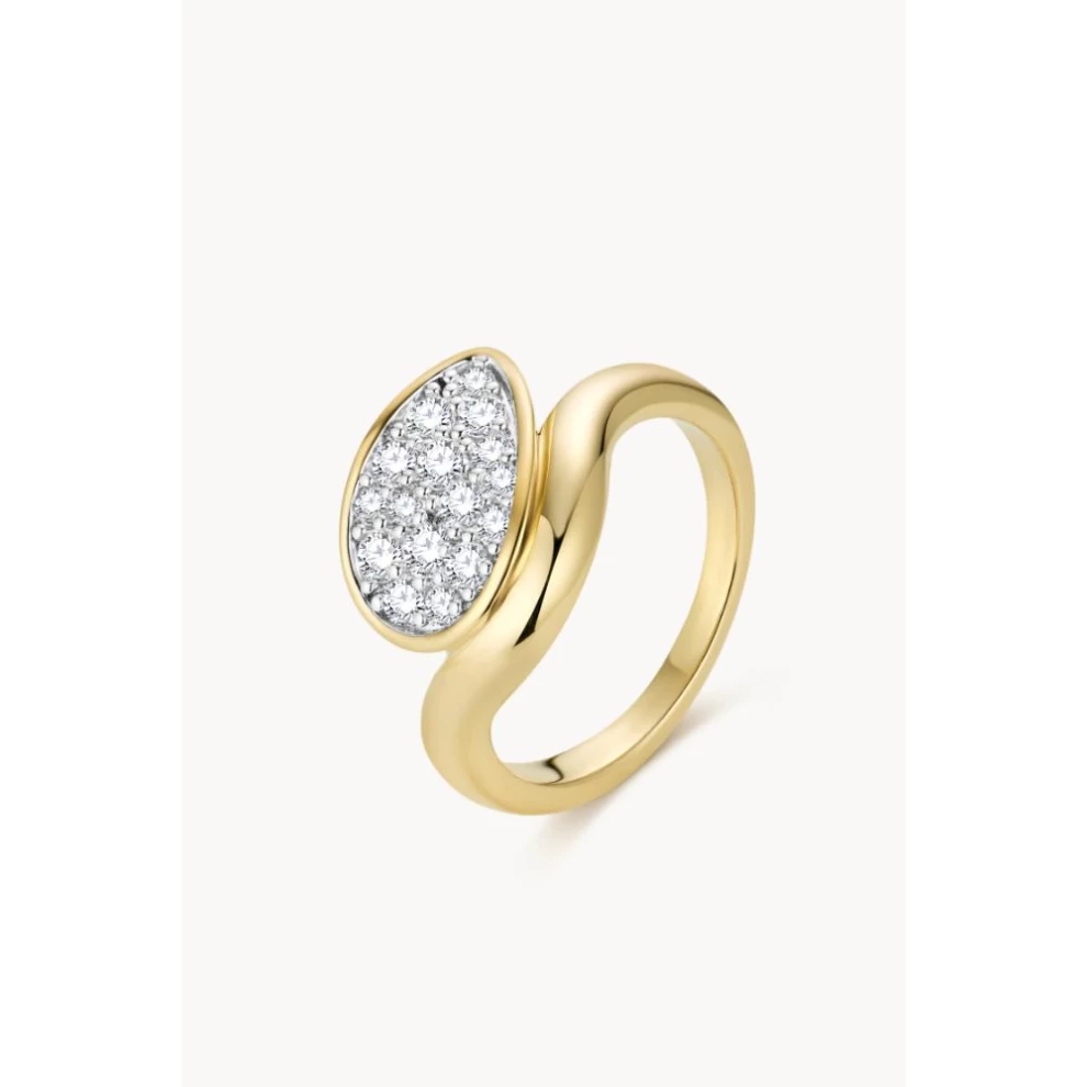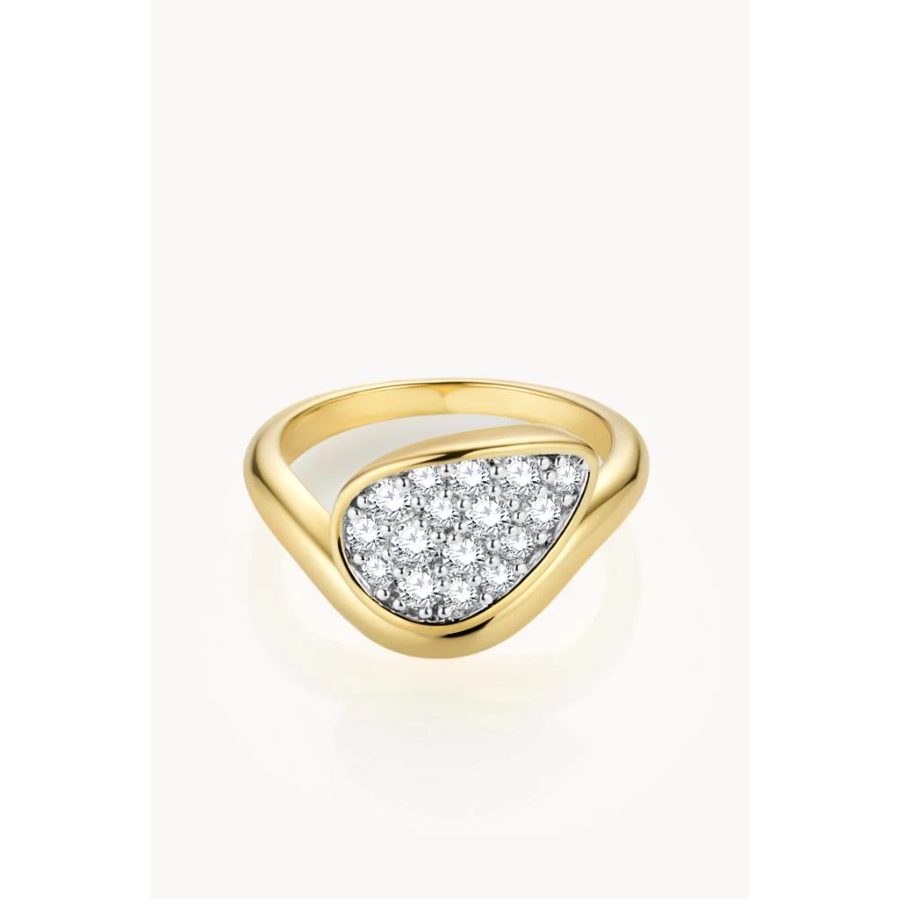 نحاس مطلي بالذهب عيار 18 قيراطًا، مرصع بأحجار الزركونيا، العرض: 10.9 مم، مصقول يدويًا
