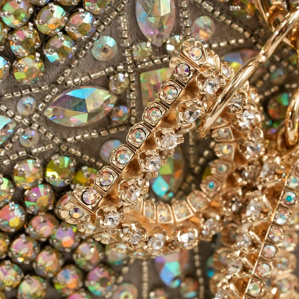 تُعدّ هذه الحقيبة الرائعة من ديور، المستعملة بحالة ممتازة، قطعةً تخطف الأنظار، إذ تتميّز بتصميمها الفريد الذي يختلف عن الجلد الكلاسيكي، حيث تزدان بنقشة كاناج المرصّعة بالكامل بالكريستال. تتألق الأحجار الكريمة بألوانها المتلألئة على قاعدة من الساتان الرمادي أو الجلد الفاخر، وتُكمّلها مقابض علوية ناعمة وحزام كتف متناسق. تُزيّن الحقيبة بتعليقات حروف ديور المميزة المرصّعة بالجواهر، لتُمثّل ذروة أناقة ديور المسائية وحرفيتها اليدوية المتقنة.