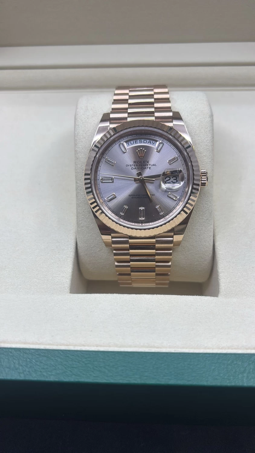 Rolex Day-Date 40mm Full Rose Gold (2025), Brand new / Unworn with full set. The pinnacle of prestige and luxury, including the original invoice, priced at: 17900 only