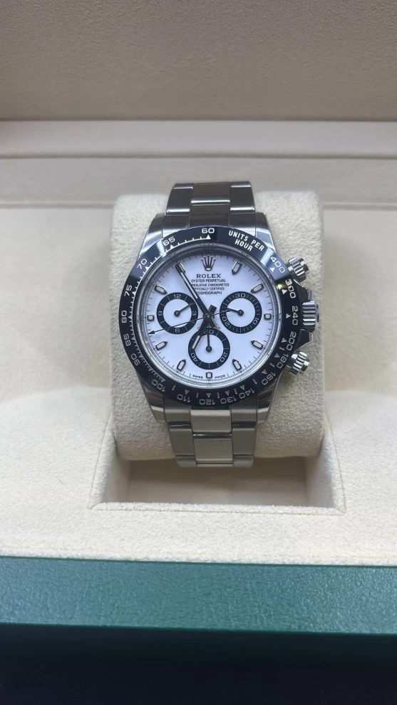 Rolex Daytona "Panda" Steel 40mm (2022), pre-owned with full set in top condition. The world's most wanted chronograph, fully protected (PPF), priced at: 8500 only.