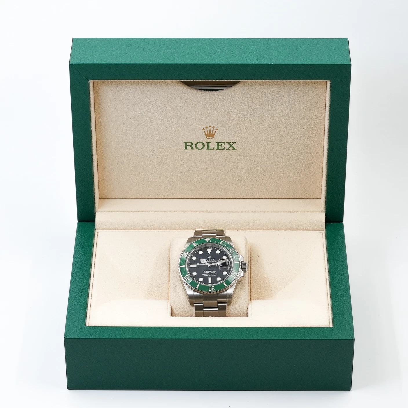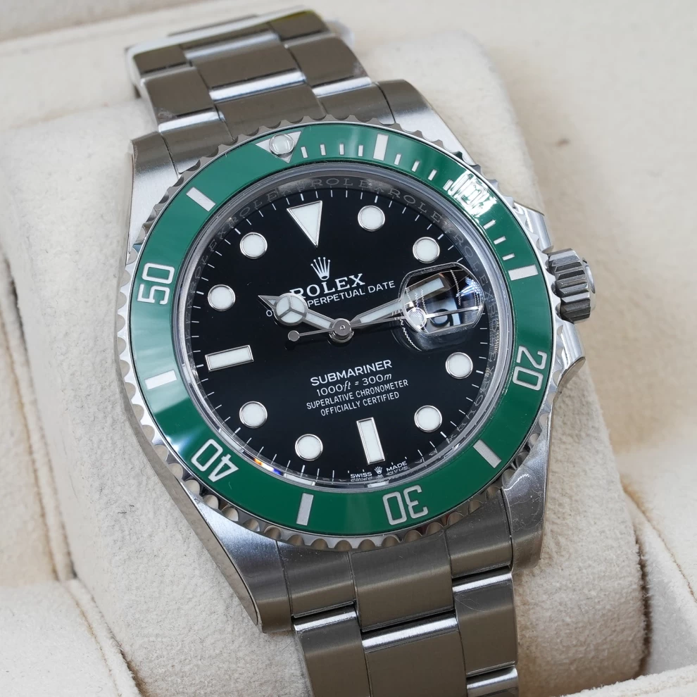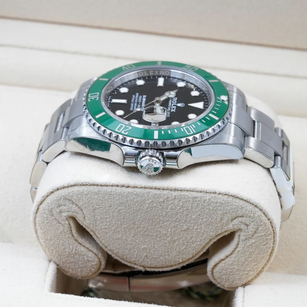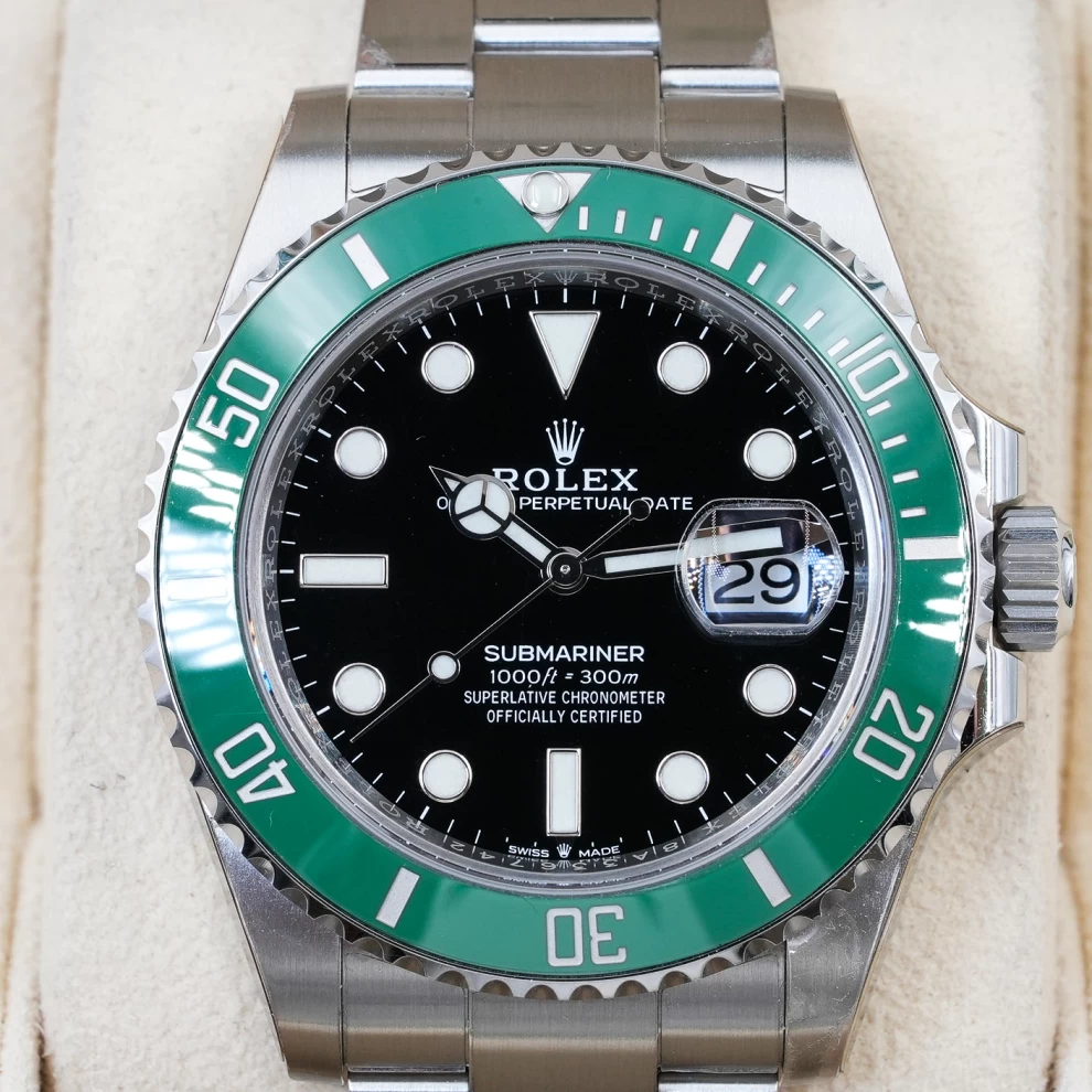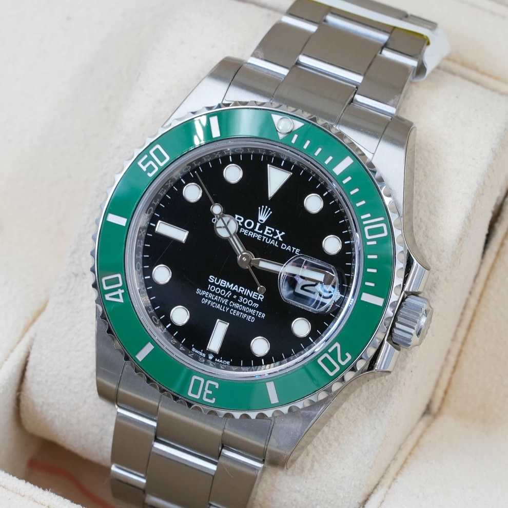 The Rolex Submariner Date 126610LV is the definitive modern diver’s watch, balancing rugged utility with iconic luxury. This model features a striking green Cerachrom ceramic bezel set against a deep black dial, housed in a redesigned 41mm Oystersteel case. Powered by the high-performance Calibre 3235 movement, it offers a 70-hour power reserve and 300-meter water resistance. With its signature Oyster bracelet and Glidelock clasp, it is a timeless masterpiece for any serious collection.
