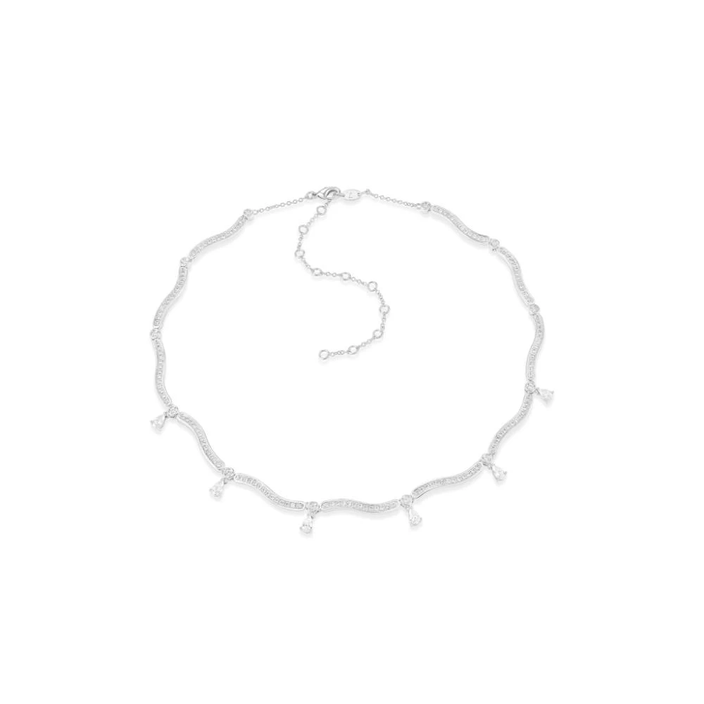 Rhodium plated brass, Width: 3cm, Size: 39cm +10cm, Hand Polished